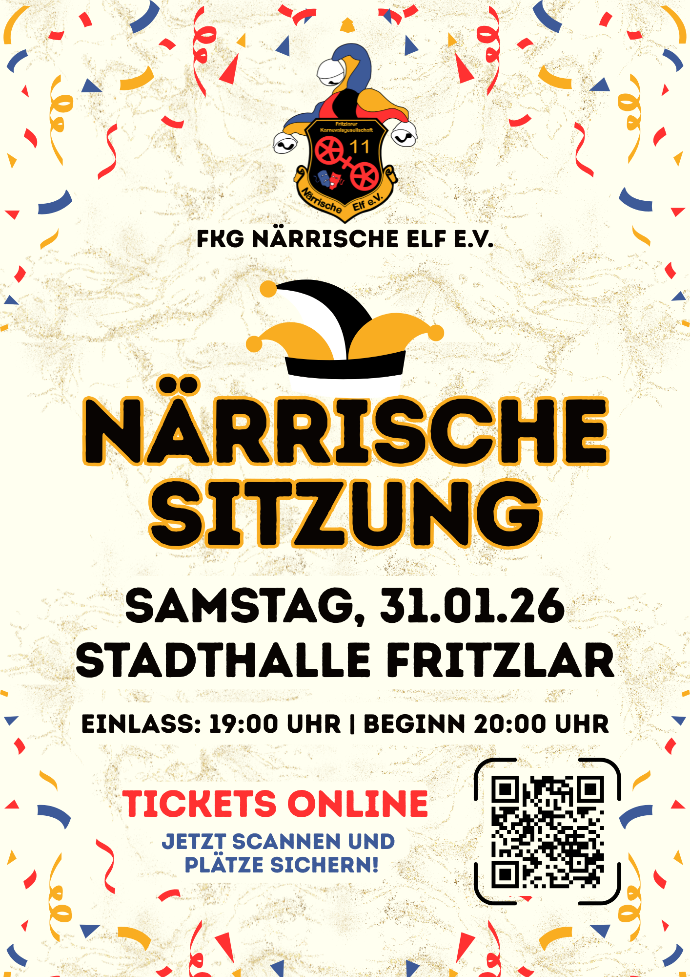 Wir laden euch herzlich zu unserem traditionellen Büttenabend in der Stadthalle Fritzlar ein!