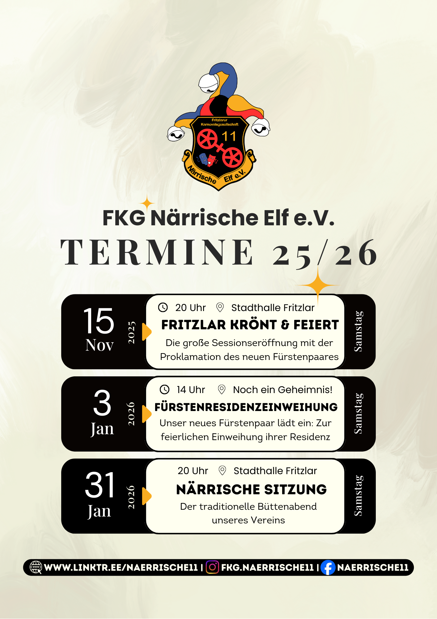Hier finden Sie alle wichtigen Termine der FKG Närrische 11.